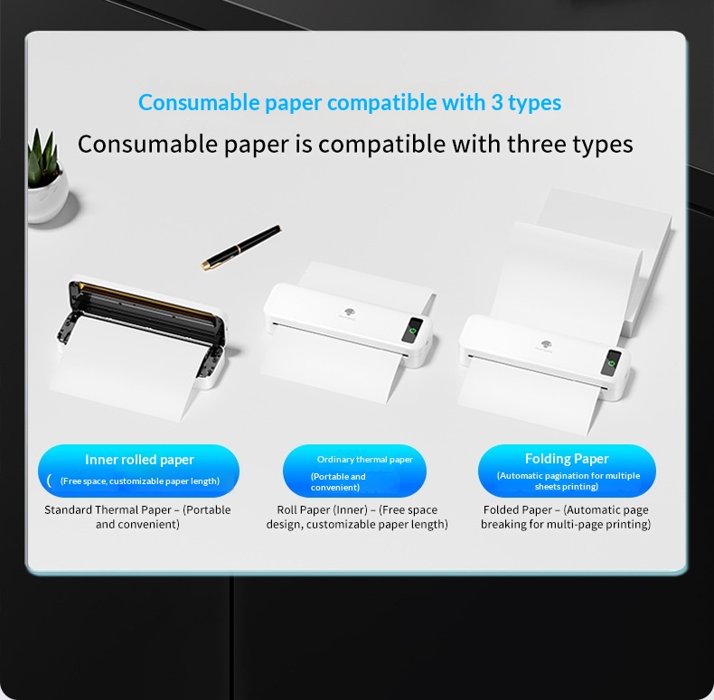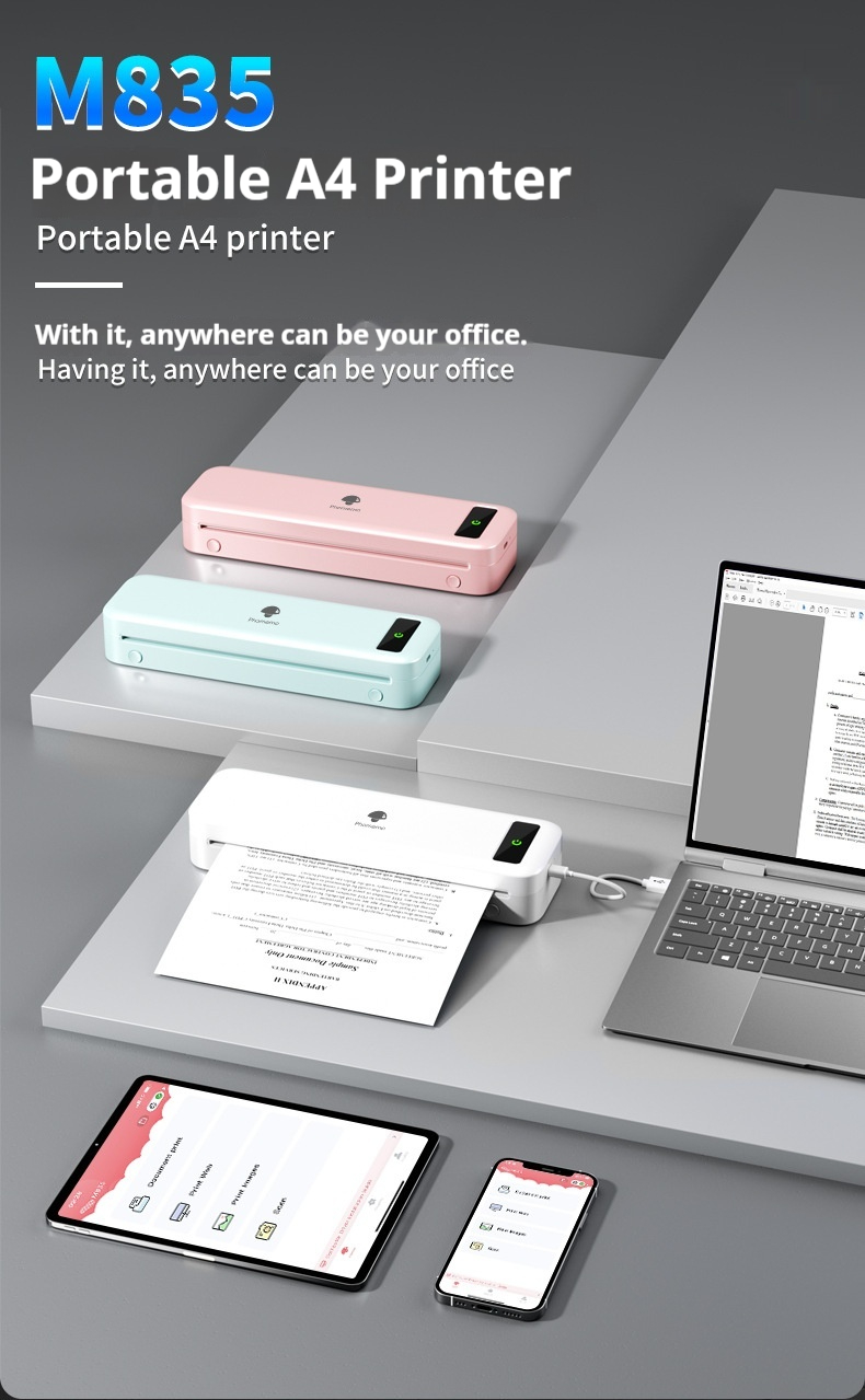 M835 Thermal A4 Mini Office Portable Bluetooth Inkless Printer